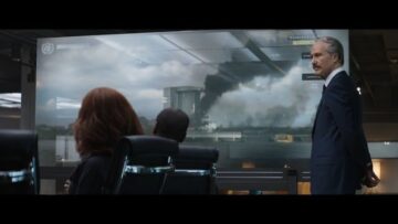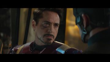と、そこにアシスタントAI(人工知能)システムF.R.I.D.A.Y.がベルリン警察から入手した映像が送られてくる。それを見たトニーはそこで自分の間違いに気付き、すぐにヘリでどこかへ向かう。