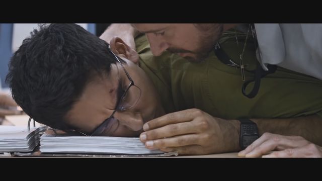 すぐにディオンのデスクに行き、軍隊の悪のりの様に脅して保護キーを貰おうとするが、会社の規定で無理だと拒否するディオン。