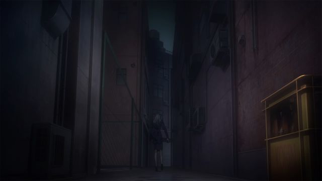 その後、謎の女性は何とか川から這い出て、裏路地をボロボロになりながら歩いて行く。