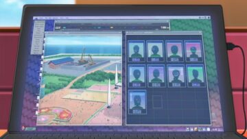 謎の女性はサーバールームにあったモニターに目をやり、手に持っていた単語帳のような5色のカラーフィルムを持って目を見開く。