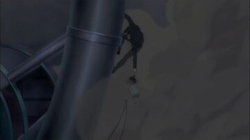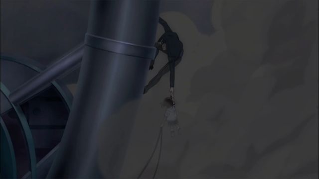 その頃、コナンを追って観覧車の構造部にやってきた灰原だったが、足場を踏み外して落ちそうになってしまう。