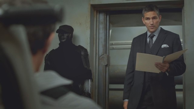 主役二人と敵対するホブス所長役のジム・カヴィーゼル。