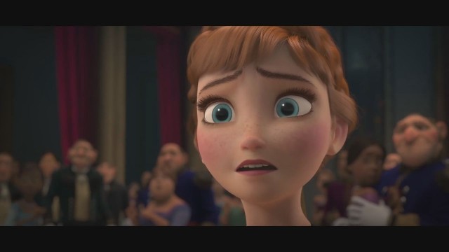 一方、アナはこれまでの退屈な日とは違い、ずっと閉ざされてきた城の門が開かれ、国民や他の国の偉い人達とも接触することになる。この日を待ち望み、気も高ぶり早速城下町に繰り出す。