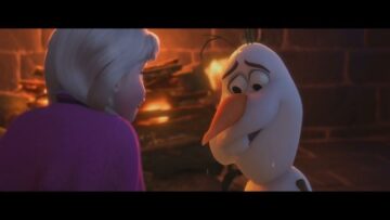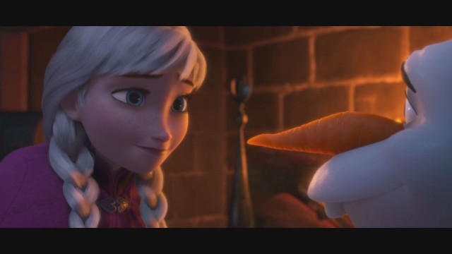 オラフはアナを助けるために、自分が解けてしまうのにも関わらず、暖炉に火を灯してアナを暖める。