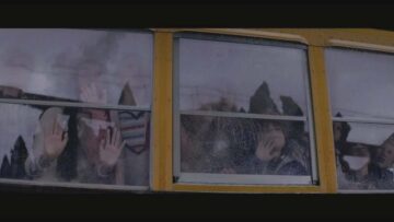 一方学校の窓から原発の崩壊を見つめる息子のフォード。