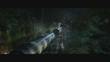 ムートーの影響により、電子機器が使えず、アナログの物しか使用できない状況で機関車にて核爆弾を運ぶフォード等 軍隊。