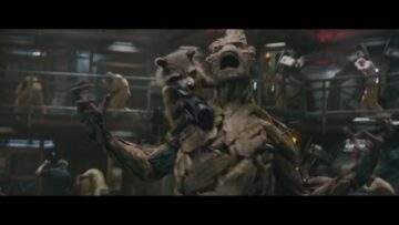 そして看守ロボットに取り囲まれたグルートとロケット。