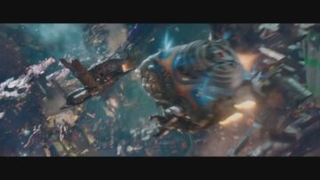 ピーターは飛行船を下り、宇宙空間に漂うガモーラの元へ。