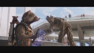 そこにヨンドゥがピーターに賭けた懸賞金を狙う、幾度の人体実験によりアライグマの姿になってしまったロケット、樹木の姿をしたグルートが参戦。