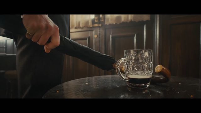 最後に腕時計から記憶を消す針を出し、店主を眠らせ、エグジーに口外は禁物だと言い去って行くハリー。