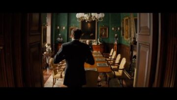 と、そこに到着したエグジーは、マーリンを飛行機に残し、偽装した招待状を使って潜入。