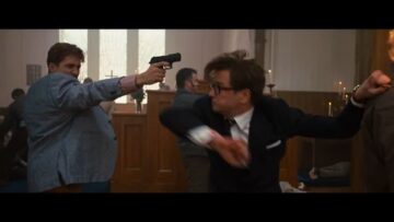 ハリーはマナーがなってないなと、防弾の傘を使い、敵の攻撃を防ぎつつ、華麗な動きで男達を次々と倒していく。