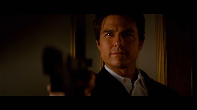 いつ引き金が引かれるのかわからない状況でトム・クルーズの向ける銃口は二人を行ったり来たり。