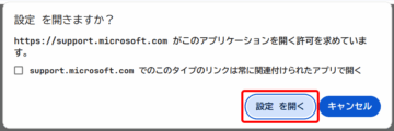 [設定を開こうとしています]というようなダイアログが表示されるので「設定を開く」もしくは「開く」をクリックします。