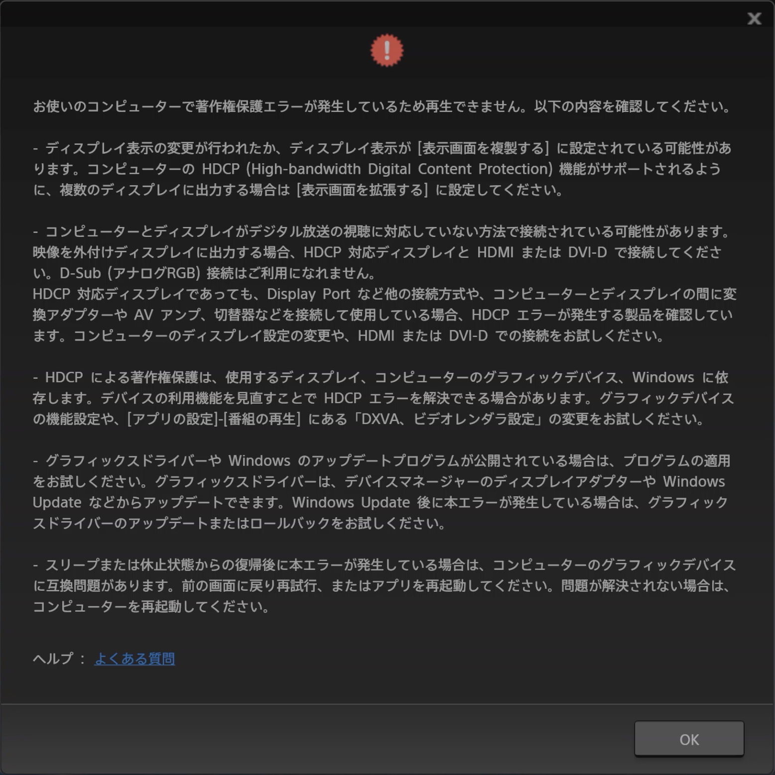 ![お使いのコンピューターで著作権保護エラーが発生しているため再生できません。以下の内容を確認してください。