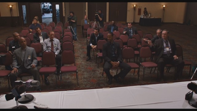 話が違うと帰ろうとするシャープに「また逃げるのか」と突っかかるマクドネン。