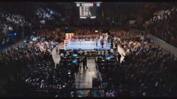 大歓声の中、二人のリングネームレーザー(シャープ)とキッド(マクドネン)の名前がコールされる。