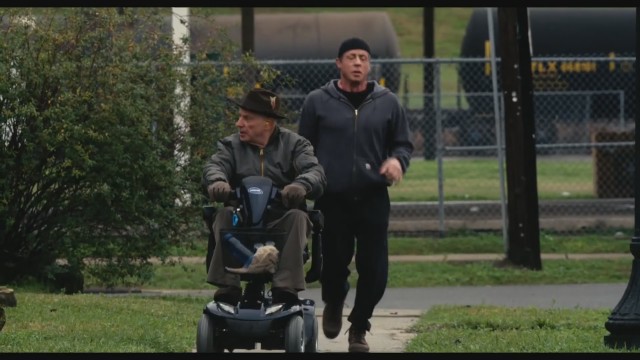 この映画でも、ファンを喜ばせるためか、生卵を一気飲みするシーンや、冷凍庫に吊された食用の牛をサンドバッグ代わりにしようとする、まさにロッキーなシーンがジョークとして盛り込まれていました。