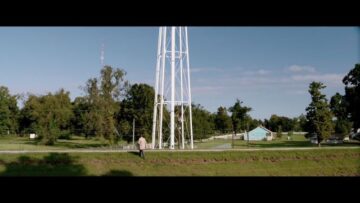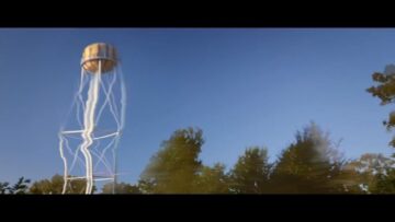 そして飛行機に乗り、車を運転して、ついにカボチャの形をした給水塔を見つける。