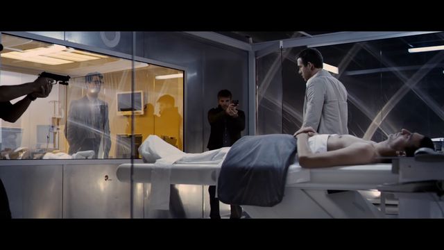 寝ているだけの男Cに被弾したのを見たオルブライトが男Cを助ける!と部屋に入ってきた所で、オルブライトの部下がダミアンの隙を突いてダミアンを押さえ、人体を入れ替える装置に無理矢理拘束。
