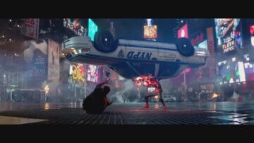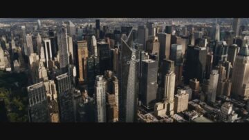 動揺するピーターだったが、その時 背後に嫌な雰囲気を感じ、タイムズスクエアの方を見つめる。