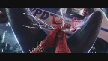大学の卒業式に向かう中、スパイダーマンになったピーターはニューヨークのビル街を縦横無尽に飛び回り、暴走するトラックが起こす事故に巻き込まれそうになる市民を助けながらトラックを追いかける。