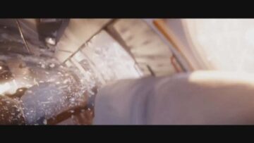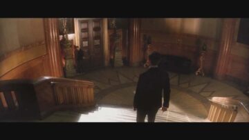 男が脱出用のパラシュートを取り、リチャードのパソコンを奪った時、異変に気付いたメアリーがトイレのドアをこじ開け、出てくる。