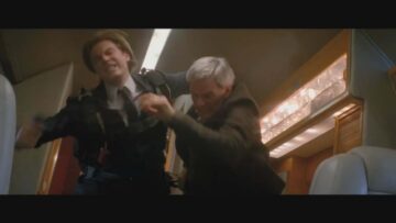 すると目覚めた男が再びリチャードに襲いかかるが、その瞬間 突然急降下するジェット機にバランスを崩す二人。