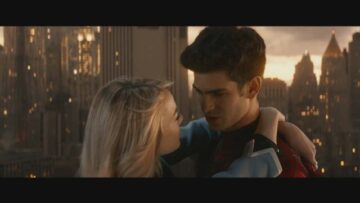 そして卒業証書授与式が始まり、ギリギリで間に合ったピーターは壇上でグウェンと熱いキスを交わす。
