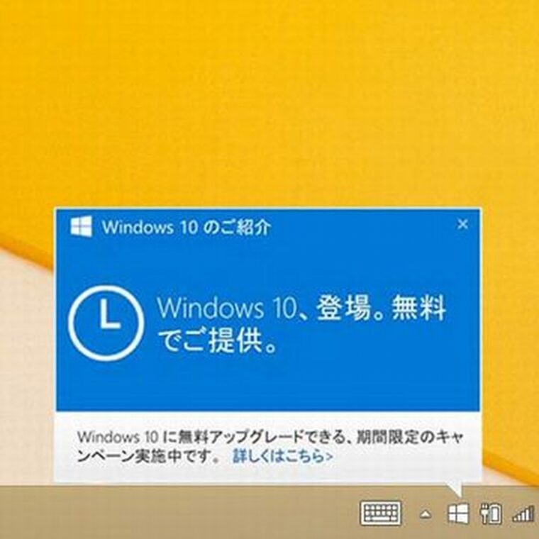 そんなWindows10にアップグレードする意思が無い方にも、問答無用でタスクバーに表示される通知アイコンを完全に消す方法を書き留めておきます。